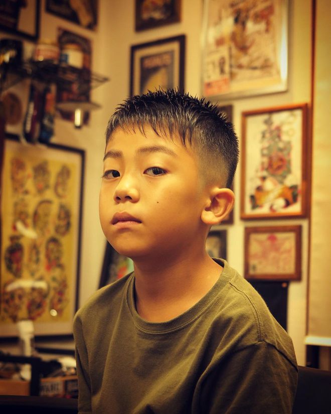 小寸头是一款特别精神的小男孩发型, 简单不挑人,也是小男孩剪得最多的一种发型。