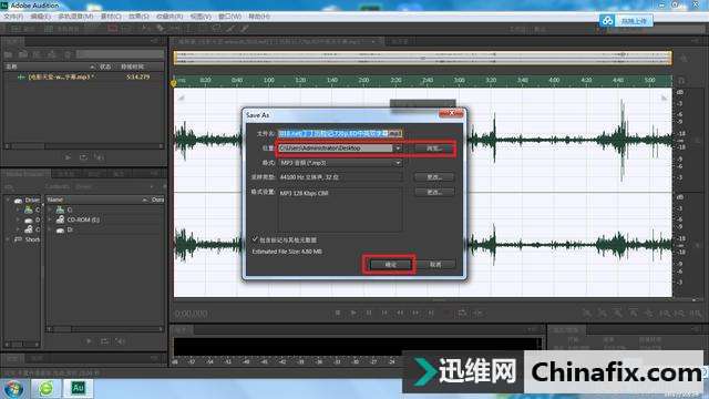 在弹出的对话框中设置好保存位置后点击确定,保存完成后,音频的人声消除就已完成。如图: